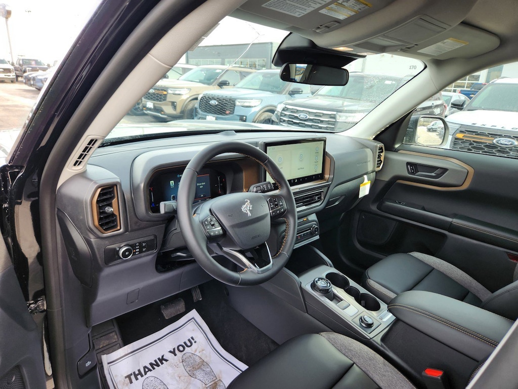 I got a 2025 Big Bend with the black diamond off road package. The steel modular front and rear in combination with bush guard gives this year model. A very aggressive off road look. With the ability to easily mount accessories and power them with the factory installed auxiliary switches. Hitch receiver seamlessly mounted into the rear steel bumper flanked by some very chunky recovery points. The upgraded aluminum rims wrapped with Continental all-terrains. It make this the most capable bronco sport yet. The interior of the 2025 has been updated with a new 13 inch touchscreen with Android Auto and apple car play. The lines of the dash flow elegantly from the new infotainment screen to the new all digital 12 inch gauge chaster. Toggling through the different modes on the gauge chaster is very intuitive, and all the displays are laid out very cleanly. Moving from gauge chaster the center storage cubby just below the infotainment screen there is a wireless charger and USB/ USB-c ports. The passenger side of that same cubby gets a handle and a matching one on the roof just in case the driver bucks a little too much. The passenger also gets a mesh storage area. That leads us to the fact this vehicle has tons of storage options all throughout. You have pockets on the sides of the front two seat big enough for the latest new phones. Very generous door storage on all four doors plus huge glove box and center console with 12 volt outlet. The back side of the center console has air vents and another 12 volt outlet plus a 110 outlet. Now getting to the cargo area it is massive for a crossover SUV. With off road package you get a cargo management system and a very nice rubber mat. Under that there is a full size tire plus scissor jack and funnel to use with the capless filler system. On the liftgate there isa pair of very bright led lights turned on with a switch in the cargo area. This feature packed vehicle has tons awesome gadgets and hidden a little homages I spend all day just talk that. At the end of the day it is car. So how does it drive. It is wonderful, the steering and pedal response is beautiful. Rides very smooth and little to no road noise going down the highway. The active cruise control and co-pilot 360 have been very handy. The car literally drives itself most of the time. There is not enough good things I could same about this car. I love it and you pick one too. You will see what I mean.… - 5.0