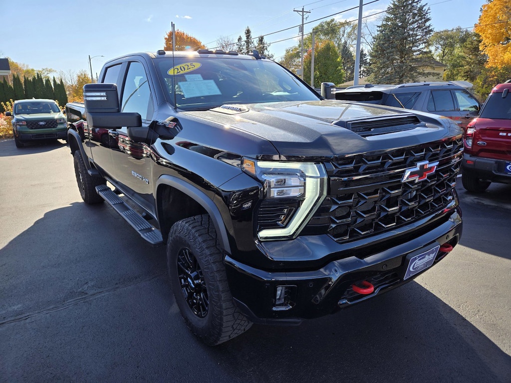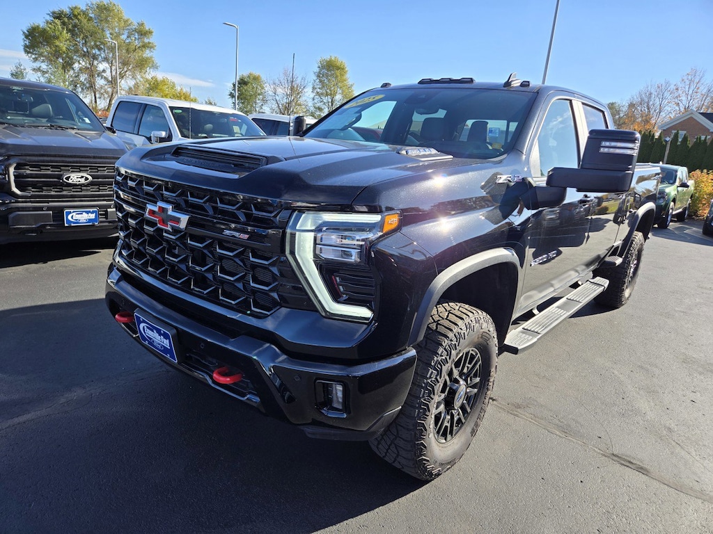 Silverado 2500HD ZR2 LOCAL TRADE, 10-Way Power Driver Seat Adjuster w/Lumbar, 10-Way Power Passenger Seat Adjuster w/Lumbar, 120-Volt Bed Mounted Power Outlet, 120-Volt Interior Power Outlet, 15" Diagonal Multicolor Head-Up Display, 170 Amp Alternator, 220 Amp Alternator, 3.73 Rear Axle Ratio, 4-Wheel Disc Brakes, 7 Speakers, 720 Cold-Cranking Amps Heavy-Duty Battery, ABS brakes, Adaptive Cruise Control, Air Conditioning, All-Weather Floor Liners (LPO), Alloy wheels, AM/FM radio: SiriusXM with 360L, Apple CarPlay/Android Auto, Auto High-beam Headlights, Auto-dimming door mirrors, Auto-Dimming Inside Rear-View Mirror, Auto-dimming Rear-View mirror, Automatic temperature control, Bed View Camera w/2 Trailer Camera Provisions, Black Chevytec Spray-On Bedliner, Bluetooth® For Phone, BOSE Premium 7-Speaker Sound System, Brake assist, Bumpers: chrome, Chevrolet Connected Access Capable, Color-Keyed Carpeting Floor Covering, Compass, Deep-Tinted Glass, Delay-off headlights, Driver door bin, Driver Memory, Driver vanity mirror, Dual front impact airbags, Dual front side impact airbags, Durabed Pickup Bed, Electric Rear-Window Defogger, Electronic Cruise Control w/Set & Resume Speed, Electronic Stability Control, Emergency communication system: OnStar, Floor-Mounted Center Console, Front anti-roll bar, Front Bucket Seats, Front Center Armrest, Front dual zone A/C, Front fog lights, Front LED Fog Lamps, Front License Plate Kit, Front Rain-Sensing Wipers, Front reading lights, Front wheel independent suspension, Fully automatic headlights, Garage door transmitter, Heated 2nd Row Outboard Seats, Heated door mirrors, Heated Driver & Front Outboard Passenger Seating, Heated front seats, Heated rear seats, Heated Steering Wheel, Heated steering wheel, High Gloss Black Mirror Caps, Hitch Guidance w/Hitch View, Illuminated entry, In-Vehicle Trailering App System, Keyless Open & Start, LED Cargo Area Lighting, LED Smoked Amber Roof Marker Lamps, Low tire pressure warning, Manual Tilt & Telescoping Steering Column, Memory seat, Occupant sensing airbag, OnStar Services Capable, Outside temperature display, Overhead airbag, Overhead console, Panic alarm, Passenger door bin, Passenger vanity mirror, Perforated Leather Seat Trim, Power Door Locks, Power door mirrors, Power driver seat, Power Front Windows w/Driver Express Up/Down, Power Front Windows w/Passenger Express Up/Down, Power passenger seat, Power Rear Windows w/Express Down, Power Sliding Rear Window w/Defogger, Power steering, Power Sunroof, Power windows, Preferred Equipment Group 3LT, Premium audio system: Chevrolet Infotainment 3 Premium, Push Button Start, Pwr Up/Down Tailgate Function w/Pwr Lock & Release, Radio: Chevrolet Infotainment 3 Premium System, Rain sensing wipers, Rear Camera Mirror, Rear Cross Traffic Alert, Rear reading lights, Rear seat center armrest, Rear step bumper, Rear Wheelhouse Liners, Rear window defroster, Remote keyless entry, Remote Vehicle Starter System, Security system, SiriusXM w/360L Trial Subscription, Snow Plow Prep/Camper Package, Speed control, Speed-sensing steering, Split folding rear seat, Standard Tailgate, Steering Wheel Audio Controls, Steering wheel mounted audio controls, Tachometer, Technology Package, Telescoping steering wheel, Tilt steering wheel, Traction control, Trailer Camera Provisions, Trip computer, Turn signal indicator mirrors, Ultrasonic Front & Rear Park Assist, Unauthorized Entry Theft-Deterrent System, Universal Home Remote, Up-Level Rear Seat w/Storage Package, Variably intermittent wipers, Ventilated Driver & Front Passenger Seats, Ventilated front seats, Voltmeter, Wheels: 18" Gloss Black w/Etched ZR2 Logo, Wi-Fi Hotspot Capable, Wireless Charging, Wireless Phone Projection, Wrapped Steering Wheel, ZR2 Suspension Package. CARFAX One-Owner. Clean CARFAX.