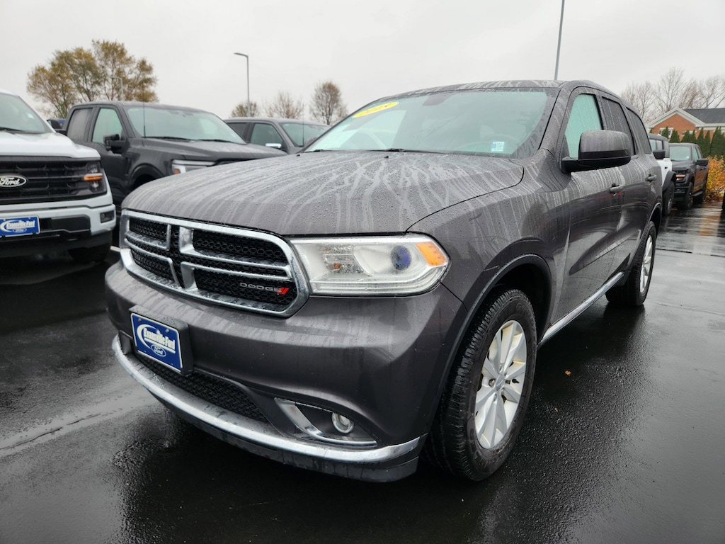 Durango SXT LOCAL TRADE, 1-Yr SIRIUSXM Radio Service, 180 Amp Alternator, 2nd Row Mini Console w/Cupholders, 2nd Row Seat Mounted Inboard Armrests, 3.45 Rear Axle Ratio, 3rd Row Floor Mat & Mini Console, 3rd row seats: split-bench, 4-Wheel Disc Brakes, 6 Speakers, 7 & 4 Pin Wiring Harness, ABS brakes, Air Conditioning, Alloy wheels, AM/FM radio, Anti-whiplash front head restraints, Automatic temperature control, Bluetooth® Streaming Audio, Brake assist, Bright Side Roof Rails, Bumpers: body-color, Class IV Receiver Hitch, Cloth Low-Back Bucket Seats, Comfort Seating Group, Compass, Delay-off headlights, Driver door bin, Driver vanity mirror, Dual front impact airbags, Dual front side impact airbags, Electronic Stability Control, For More Info Call 800-643-2112, Four wheel independent suspension, Front anti-roll bar, Front Bucket Seats, Front Center Armrest w/Storage, Front dual zone A/C, Front fog lights, Front reading lights, Fully automatic headlights, GPS Antenna Input, Heated door mirrors, Heated Front Seats, Heated Steering Wheel, Heavy-Duty Engine Cooling, Illuminated entry, Integrated Roof Rail Crossbars, Integrated Voice Command w/Bluetooth, Knee airbag, Leather Wrapped Steering Wheel, Low tire pressure warning, Manufacturer's Statement of Origin, Occupant sensing airbag, Outside temperature display, Overhead airbag, Overhead console, Panic alarm, ParkSense Rear Park Assist System, ParkView Rear Back-Up Camera, Passenger door bin, Passenger vanity mirror, Popular Equipment Group, Power 4-Way Driver Lumbar Adjust, Power 8-Way Driver/Manual Passenger Seat, Power door mirrors, Power steering, Power windows, Quick Order Package 23B, Radio: Uconnect 5.0, Rear air conditioning, Rear anti-roll bar, Rear Load Leveling Suspension, Rear reading lights, Rear seat center armrest, Rear window defroster, Rear window wiper, Rear-View Auto-Dimming Mirror w/Microphone, Remote keyless entry, Roadside Assistance & 9-1-1 Call, SIRIUSXM Satellite Radio, Speed-Sensitive Wipers, Split folding rear seat, Spoiler, Steering wheel mounted audio controls, Tachometer, Telescoping steering wheel, Tilt steering wheel, Traction control, Trailer Tow Group IV, Trip computer, Uconnect Voice Command w/Bluetooth, Variably intermittent wipers, Wheels: 18" x 8.0" Painted Aluminum. CARFAX One-Owner. Clean CARFAX.