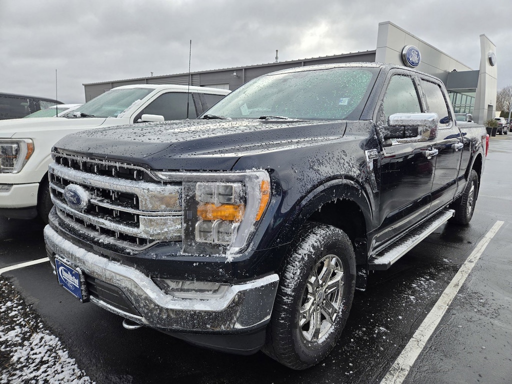 Recent Arrival! F-150 Lariat LOCAL TRADE, 4-Wheel Disc Brakes, 4x4 FX4 Off-Road Bodyside Decal, 8 Speakers, ABS brakes, Adjustable pedals, Air Conditioning, Alloy wheels, AM/FM radio: SiriusXM with 360L, Auto High-beam Headlights, Auto Start-Stop Removal (DISC), Auto-dimming door mirrors, Auto-dimming Rear-View mirror, Automatic temperature control, Bed Utility Package, BoxLink, Brake assist, Bumpers: chrome, Chrome wheels, Class IV Trailer Hitch Receiver, Compass, Delay-off headlights, Driver door bin, Driver vanity mirror, Dual front impact airbags, Dual front side impact airbags, Electronic Stability Control, Emergency communication system: SYNC 4 911 Assist, Equipment Group 501A Standard, Exterior Parking Camera Rear, Front anti-roll bar, Front Bucket Seats, Front Center Armrest, Front dual zone A/C, Front fog lights, Front reading lights, Front wheel independent suspension, Fully automatic headlights, FX4 Off-Road Package, Garage door transmitter, Heated door mirrors, Heated front seats, Heated steering wheel, Hill Descent Control, Illuminated entry, Inclination/Intrusion Sensor Removal, Leather-Trimmed Bucket Seats, LED Box Lighting, LED Sideview Mirror Spotlights, Low tire pressure warning, Memory seat, Monotube Rear Shocks, Occupant sensing airbag, Off-Road Tuned Front Shock Absorbers, Outside temperature display, Overhead airbag, Overhead console, Panic alarm, Passenger door bin, Passenger vanity mirror, Pedal memory, Power door mirrors, Power driver seat, Power passenger seat, Power steering, Power Tailgate, Power windows, Radio data system, Radio: B&O Sound System by Bang & Olufsen, Rear reading lights, Rear seat center armrest, Rear step bumper, Rear window defroster, Remote keyless entry, Rock Crawl Mode, Security system, Speed control, Speed-sensing steering, Split folding rear seat, Steering Wheel Heat Removal (DISC), Steering wheel mounted audio controls, SYNC 4 w/Enhanced Voice Recognition, Tachometer, Tailgate Step w/Tailgate Work Surface, Telescoping steering wheel, Tilt steering wheel, Traction control, Tray Style Floor Liner (47W), Trip computer, Turn signal indicator mirrors, Variably intermittent wipers, Ventilated front seats, Voltmeter, Wheel Well Liner. CARFAX One-Owner.