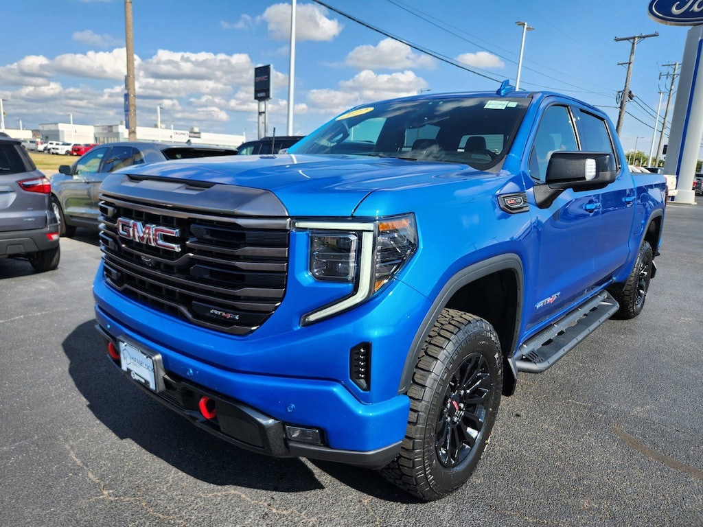 Sierra 1500 AT4X 4WD, HEATED & COOLED LEATHER SEATS, 2ND ROW HEATED SEATS, BLUETOOTH, BACKUP CAMERA, AUTOMATIC, POWER WINDOWS & LOCKS, POWER DRIVER SEAT, ALLOY WHEELS, RUNNING BOARDS, LOCAL TRADE-IN, 120-Volt Bed Mounted Power Outlet, 120-Volt Instrument Panel Power Outlet, 2 Charge/Data USB Ports Inside Center Console, 2 Type-C Charge-Only Rear USB Ports, 2 USB Ports, Bed View Camera, Bose Premium Series w/12-Speaker System, Color-Keyed Carpeting Floor Covering, Compass, Dark Nickel Header & Grille Insert Bars, Deep-Tinted Glass, Driver-Selectable Full-Locking Front Differential, Driver-Selectable Full-Locking Rear Differential, Electric Rear-Window Defogger, Electrical Steering Column Lock, Floor-Mounted Center Console, Front Prem Floor Liners w/Removable Carpet Insert, Front Rainsensing Wipers, GMC Connected Access Capable, HD Surround Vision, Heated 2nd Row Outboard Seats, Heated Driver & Front Outboard Passenger Seating, Heavy-Duty Air Filter, Hill Descent Control, Hitch Guidance, Hitch Guidance w/Hitch View, In-Vehicle Trailering App, Integrated Trailer Brake Controller, Keyless Open & Start, LED Cargo Area Lighting, Multicolor 15" Diagonal Head-Up Display, MultiPro Audio System by Kicker (LPO), Navigation System, OnStar & GMC Connected Services Capable, Perimeter Lighting, Power Door Locks, Power Front Passenger Windows w/Express Up/Down, Power Front Windows w/Driver Express Up/Down, Power Rake & Telescoping Steering Column, Power Rear Windows w/Express Down, Power Sliding Rear Window w/Rear Defogger, Power Sunroof, Preferred Equipment Group 4SG, Push Button Start, Rear Cross Traffic Braking, Rear Pedestrian Detection, Rear Prem Floor Liners w/Removable Carpet Insert, Rear Wheelhouse Liners, Red Recovery Hooks, Remote Vehicle Starter System, SiriusXM w/360L, Spray-On Pickup Bed Liner w/AT4X Logo, Steering Wheel Audio Controls, Theft Deterrent System (Unauthorized Entry), Trailer Camera Provisions, Trailer Side Blind Zone Alert, Trailer Tire Pressure Monitor System, Trailering Package, Ultrasonic Front & Rear Park Assist, Universal Home Remote, Ventilated Driver & Front Passenger Seats, Wi-Fi Hotspot Capable, Wireless Charging, Wireless Phone Projection.